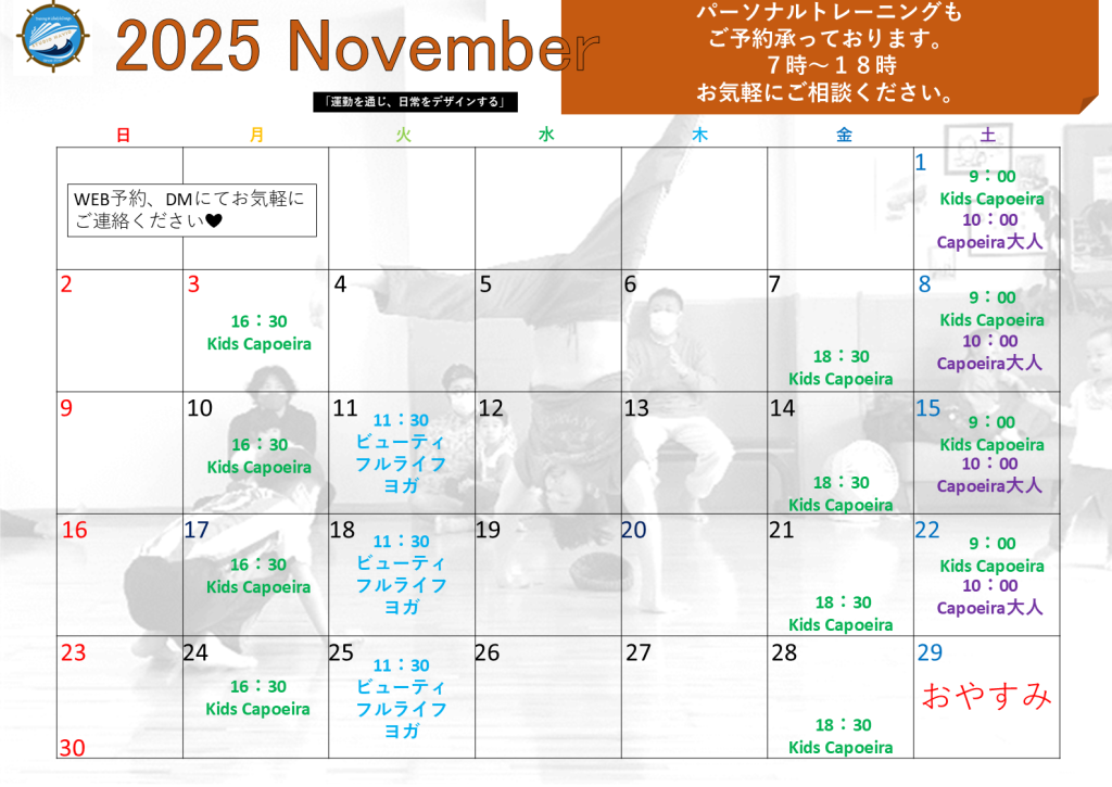 ホーム > お知らせ&ブログ > 11月のスケジュール